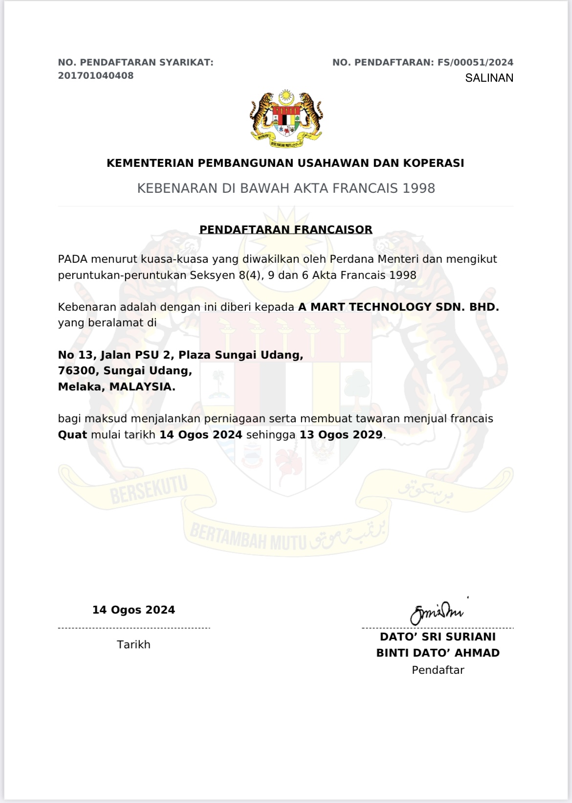 With year-long expertise and carefully curated database, QUAT look forward to venture further and bigger with partners possessing keen business sense. For inquiries on prime locations for our next outlet and to delve deeper into these exciting opportunities, kindly share your contact information below.